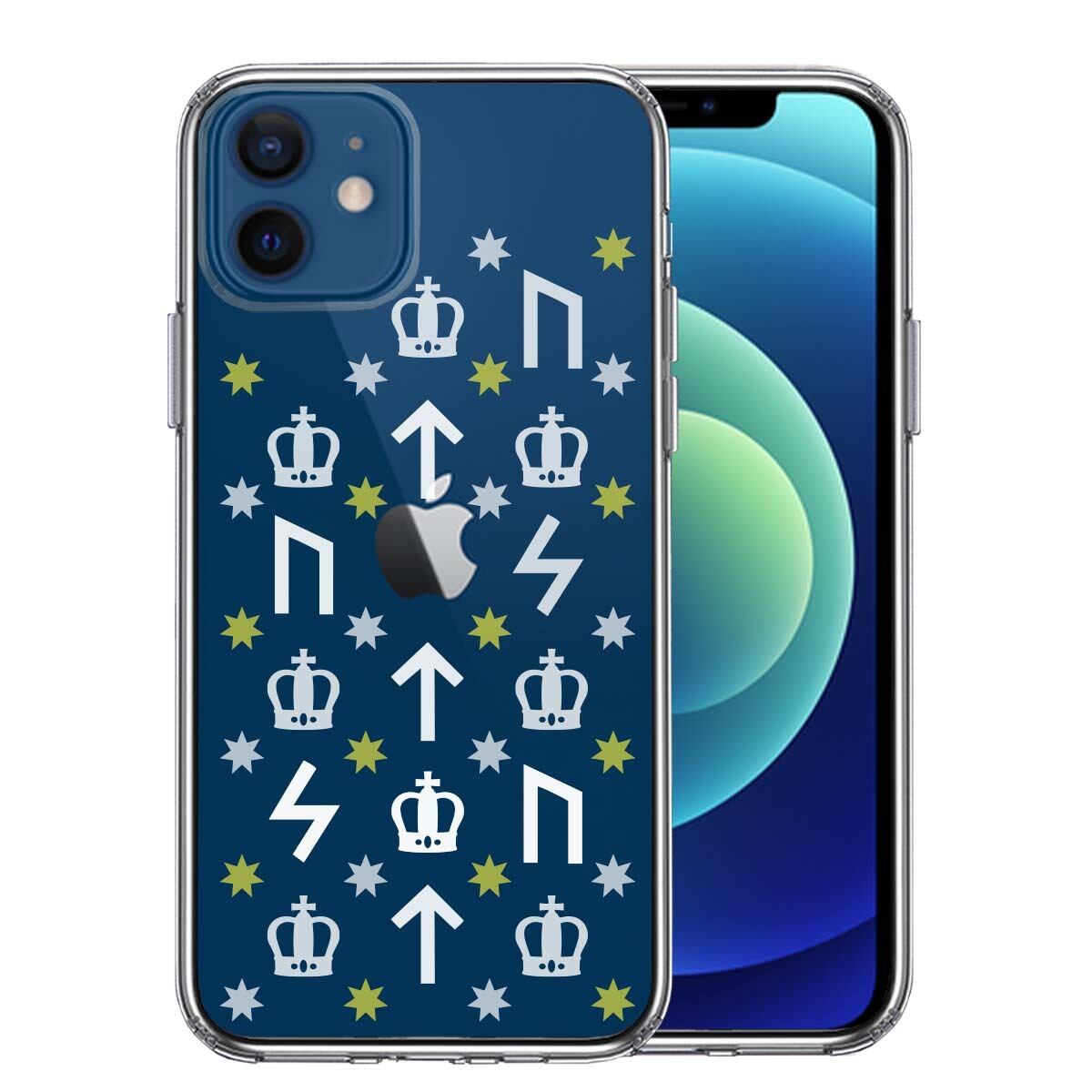 iPhone12/12Pro/12mini 側面ソフト 背面ハード ハイブリッド クリア ケース ルーン 文字 イエロー