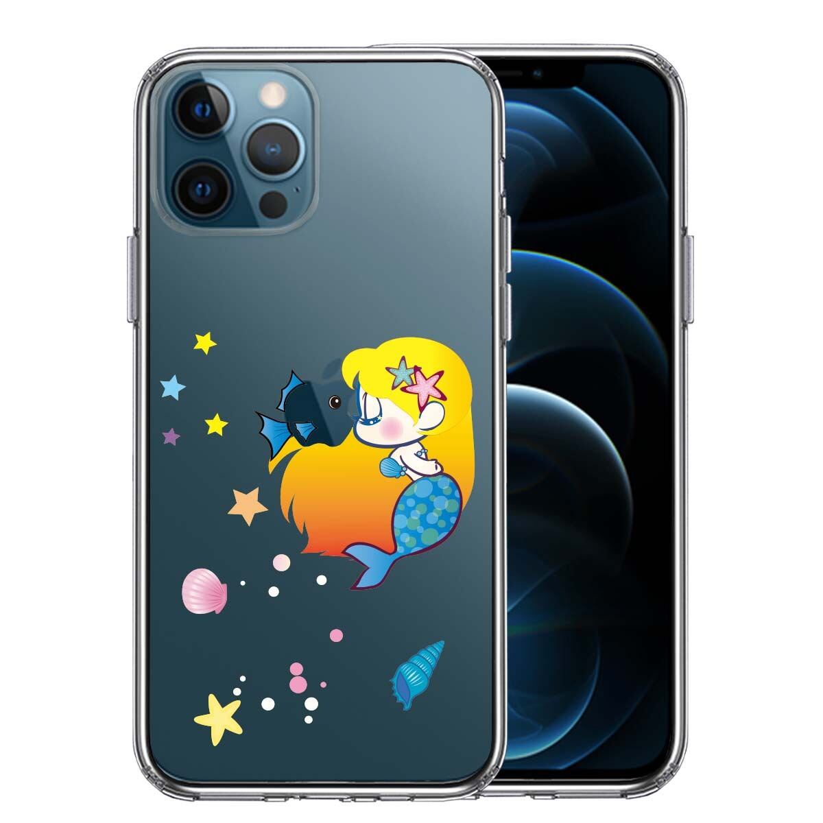 iPhone12/12Pro/12mini 側面ソフト 背面ハード ハイブリッド クリア ケース Young mermaid 3 人魚姫 マーメイド