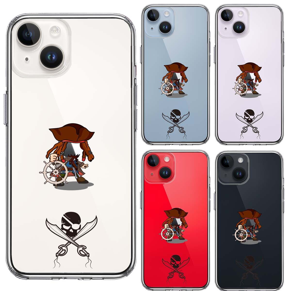 iPhone14/14Plus 側面ソフト 背面ハード ハイブリッド クリア ケース 海賊 帆船 スカル